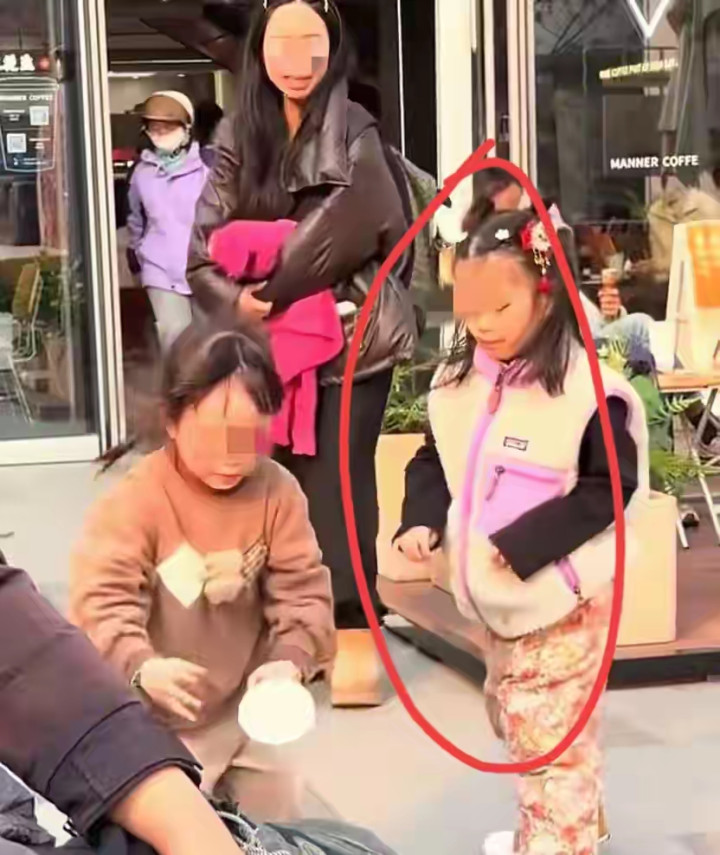 扎马尾的女孩站在原地看了一眼,没说一个字,转头就往妈妈身边走。她的妈妈就在不远处看着,全程没动一下,也没开口问一句,拉着自己女儿的手就往人群里走。