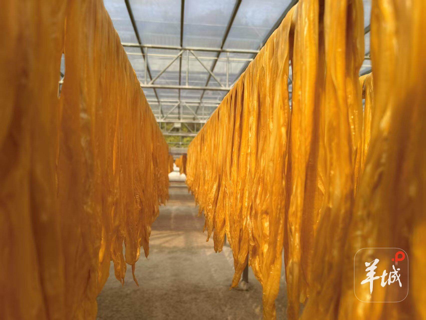如今,产业园已覆盖大坝镇、阳明镇等4个镇64个行政村,集聚5家实施主体,建成278家腐竹加工销售企业及家庭作坊,拥有730条生产线,2024年腐竹年产量达1.55万吨,年综合产值约7亿元,预计全面达产后总产值将突破10亿元。