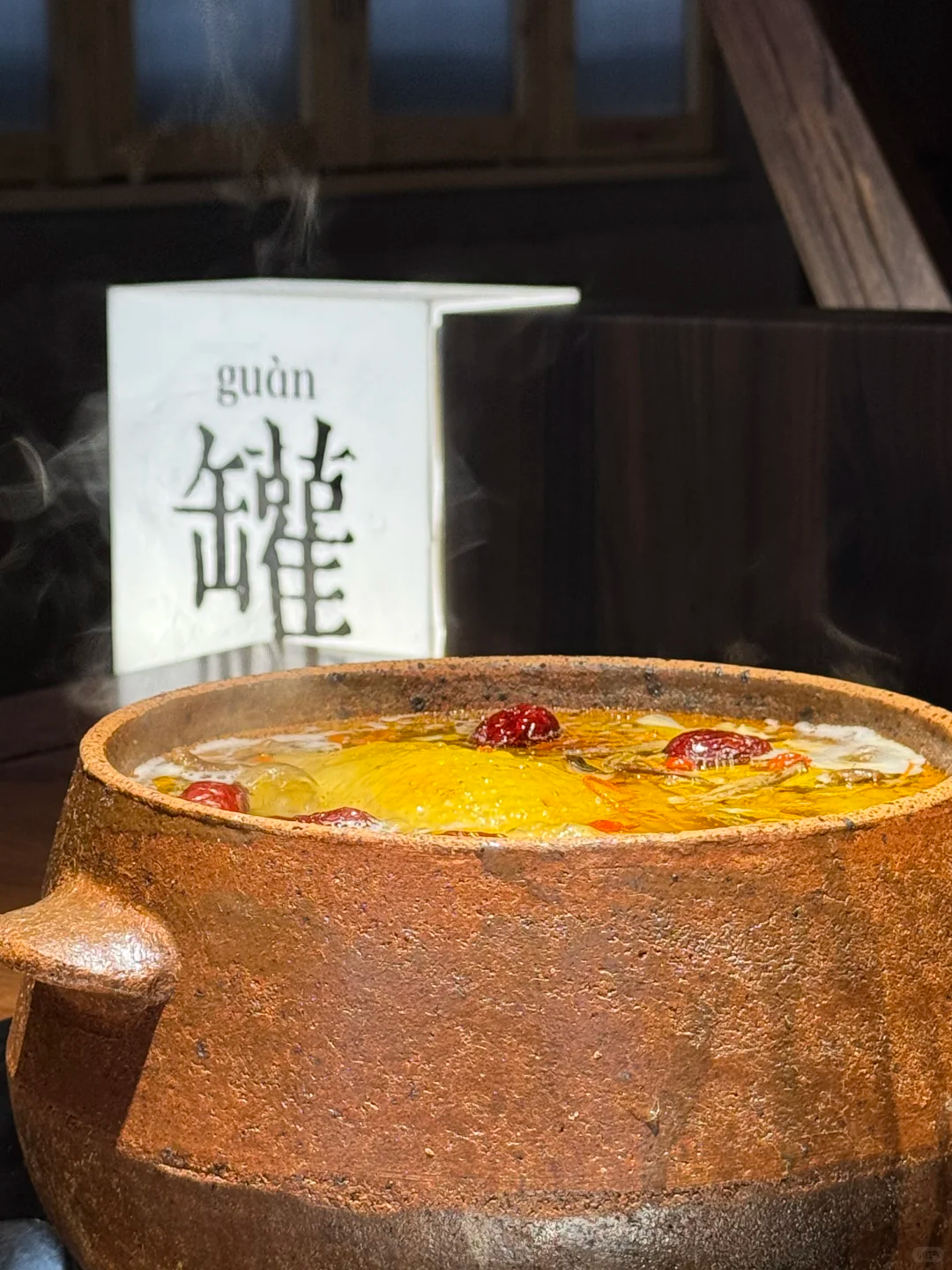 兴义市区具有新中式韵味的地方美食,瓦罐慢炖6个小时,才能端上这一锅鲜浓鸡汤。枸杞、红枣、竹荪、虫草花……多种药食同源的食材下锅,精华都锁在这浓汤里。
